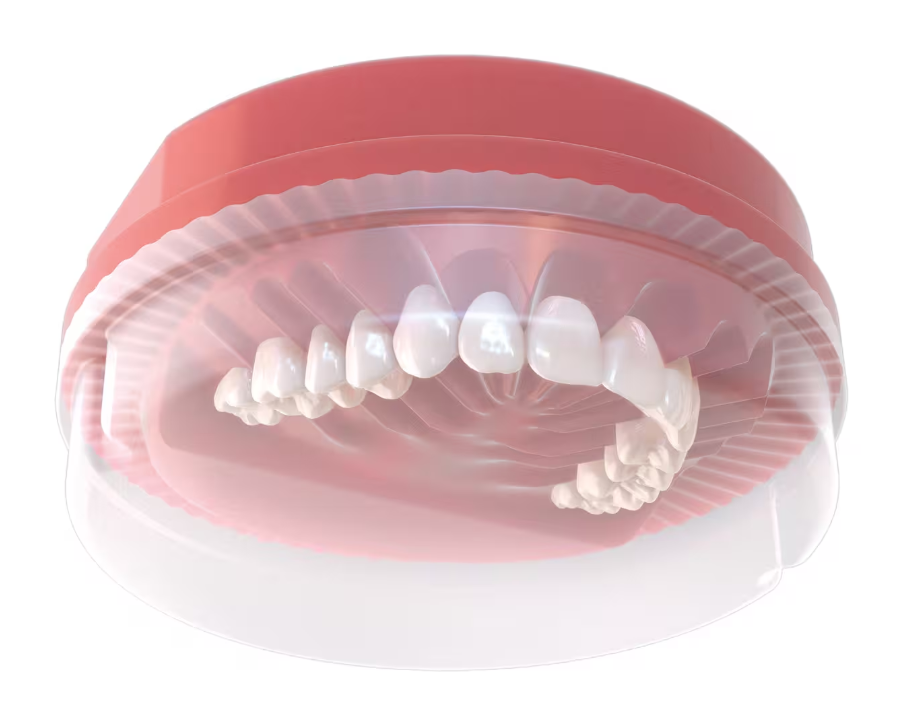 Unlike conventional methods that rely on bonding teeth to a base, Shell Geometry creates a homogeneous structure between two premium PMMA components. The bond is not merely mechanical—it forms a unified, seamless material block that ensures superior structural strength, reduces the risk of delamination, and enhances the long-term durability of the prosthesis.